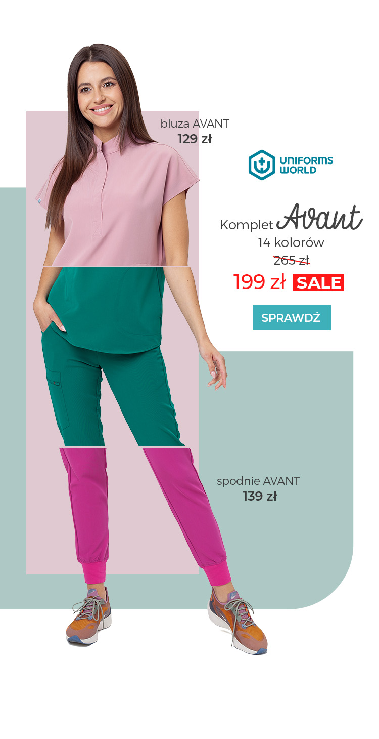 W asortymencie naszego sklepu znajdziesz starannie dobraną odzież dla pracowników ochrony zdrowia, dedykowaną zarówno kobietom, jak i mężczyznom. Proponujemy wyłącznie produkty renomowanych marek, które łączą w sobie modę i komfort. Nasza oferta stale się rozwija, obejmując nowe kolory i wzory odzieży medycznej, butów oraz dodatków, aby każdy mógł znaleźć coś odpowiedniego dla siebie. Na naszej stronie dostępny jest darmowy konfigurator, który pozwala na zestawienie ze sobą spodni i bluz medycznych oraz sprawdzanie różnych połączeń kolorystycznych w zestawach.