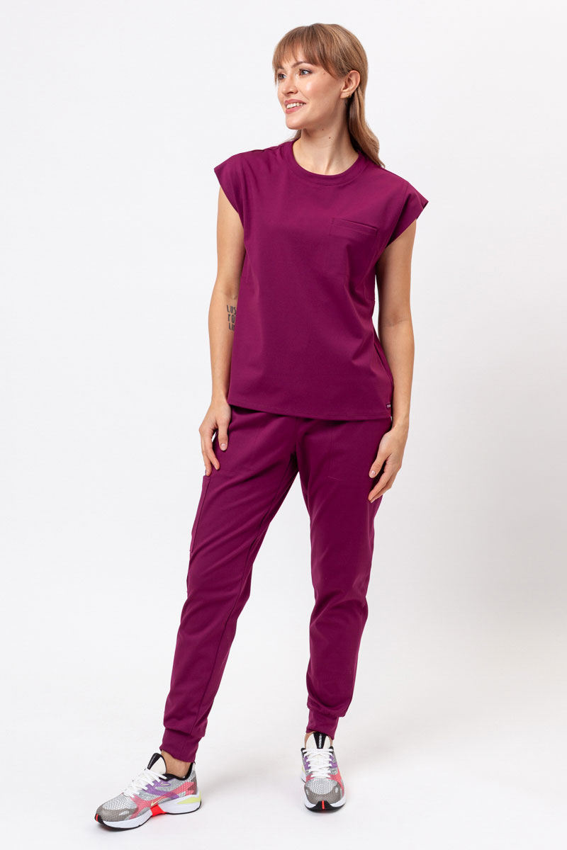 Bluza medyczna Cherokee Achieve wyróżnia się nowoczesnym krojem, który przełamuje schemat tradycyjnych uniformów. Rękawy typu raglan zapewniają pełną swobodę ruchów i nadają całości dynamicznego charakteru. Okrągły dekolt przy szyi subtelnie podkreśla minimalistyczny styl i odróżnia ten model od popularnych bluz z głębszymi wycięciami. Nieco krótszy fason sprawia, że bluza prezentuje się lekko i wyjątkowo nowocześnie. Dzięki swojemu designowi ta bluza świetnie sprawdzi się nie tylko w pracy, ale też jako stylowy element codziennej garderoby. Dlaczego nie połączyć profesjonalizmu z modnym, codziennym lookiem? :)