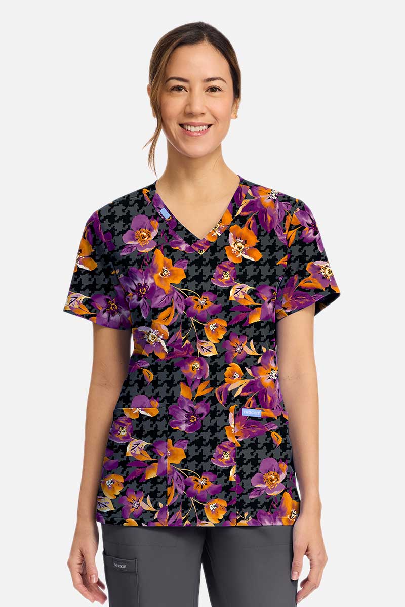 Bluza medyczna damska Cherokee Prints V-neck Velvet Floral NOWOŚĆ