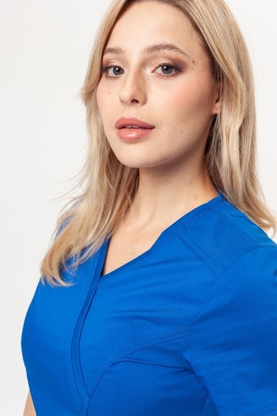 Kto powiedział, że ubiór kobiety pracującej w ochronie zdrowia nie może być efektowny? Ta bluza Cherokee to dowód na to, że można wyglądać atrakcyjnie i kobieco, a jednocześnie czuć się niezwykle wygodnie. Delikatnie taliowany, dopasowany górą i rozszerzony u dołu krój został opatrzony tak zwanymi „szwami księżniczki”, które mają za zadanie podkreślić sylwetkę. Pojemne kieszenie zostały estetycznie wszyte i również opatrzone modnymi przeszyciami. Użyty materiał pozwala na swobodę ruchów i komfortową pracę w każdych warunkach.