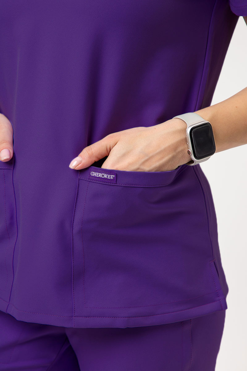 Długotrwały komfort - to o nim myślisz przede wszystkim, wybierając strój do pracy? Ta bluza z kolekcji Cherokee Originals Ultra zapewni Ci nie tylko wygodę na cały dzień, ale też profesjonalny i modny wygląd. Zachwyci Cię jej klasyczny taliowany krój z krótkim rękawem i dekoltem w serek, który rozszerza się u dołu, by dać Ci maksimum swobody. Materiał, z którego wykonany został top jest oddychający, szybkoschnący, odporny na blaknięcie i zagniecenia, łatwy w pielęgnacji i bardzo przyjemny dla skóry. Zastosowana technologia PROTX2® chroni przed nieprzyjemnymi zapachami. Docenisz również dwie pojemne kieszenie oraz pętelkę na identyfikator przy kołnierzyku. Wybierz tę bluzę i ciesz się bajecznym komfortem każdego dnia!
