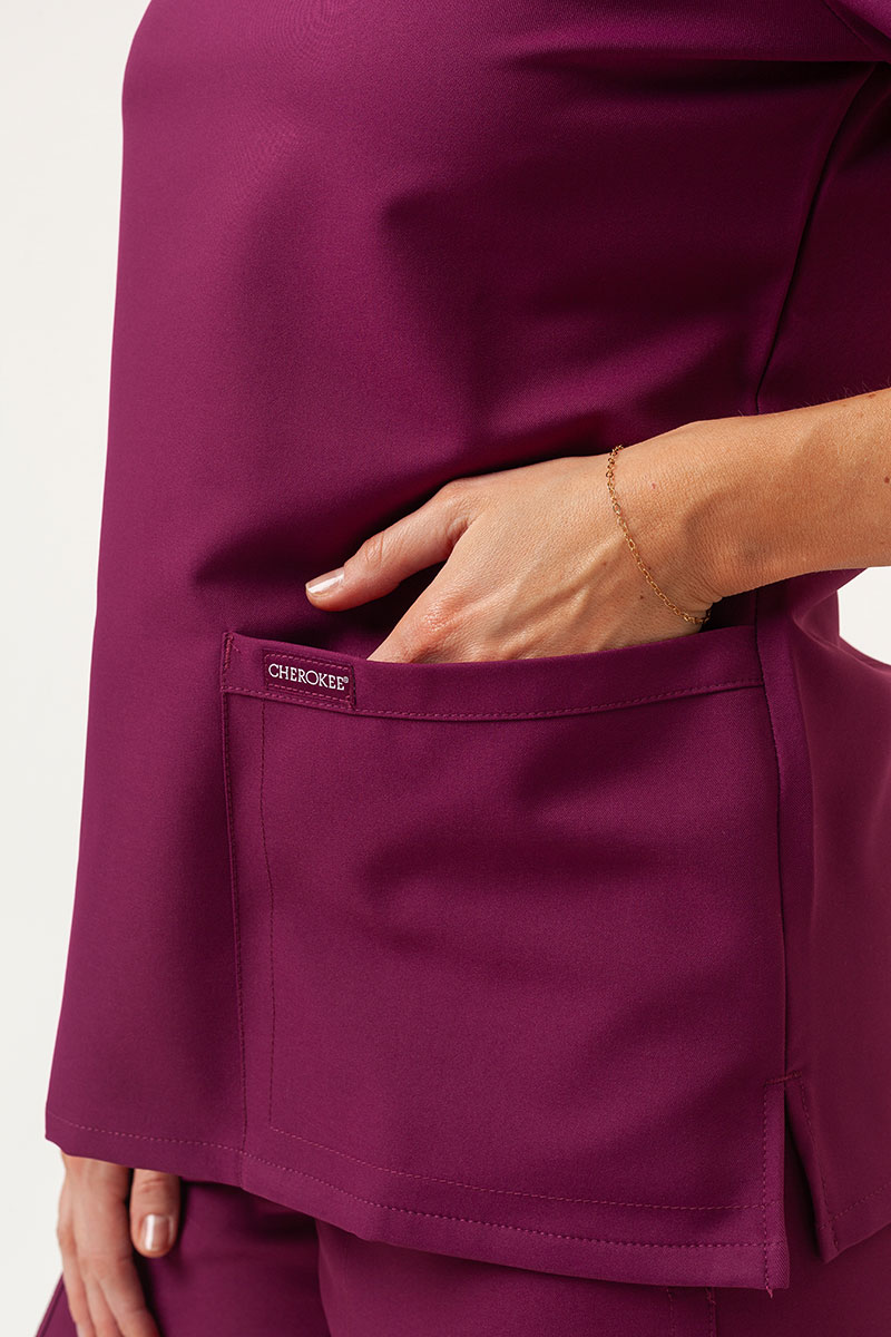 Długotrwały komfort – to o nim myślisz przede wszystkim, wybierając strój do pracy? Ta bluza z kolekcji Cherokee Originals Ultra zapewni Ci nie tylko wygodę na cały dzień, ale też profesjonalny i modny wygląd. Zachwyci Cię jej klasyczny taliowany krój z krótkim rękawem i dekoltem w serek, który rozszerza się u dołu, by dać Ci maksimum swobody. Materiał, z którego wykonany został top jest oddychający, szybkoschnący, odporny na blaknięcie i zagniecenia, łatwy w pielęgnacji i bardzo przyjemny dla skóry. Zastosowana technologia PROTX2® chroni przed nieprzyjemnymi zapachami. Docenisz również dwie pojemne kieszenie oraz pętelkę na identyfikator przy kołnierzyku. Wybierz tę bluzę i ciesz się bajecznym komfortem każdego dnia!