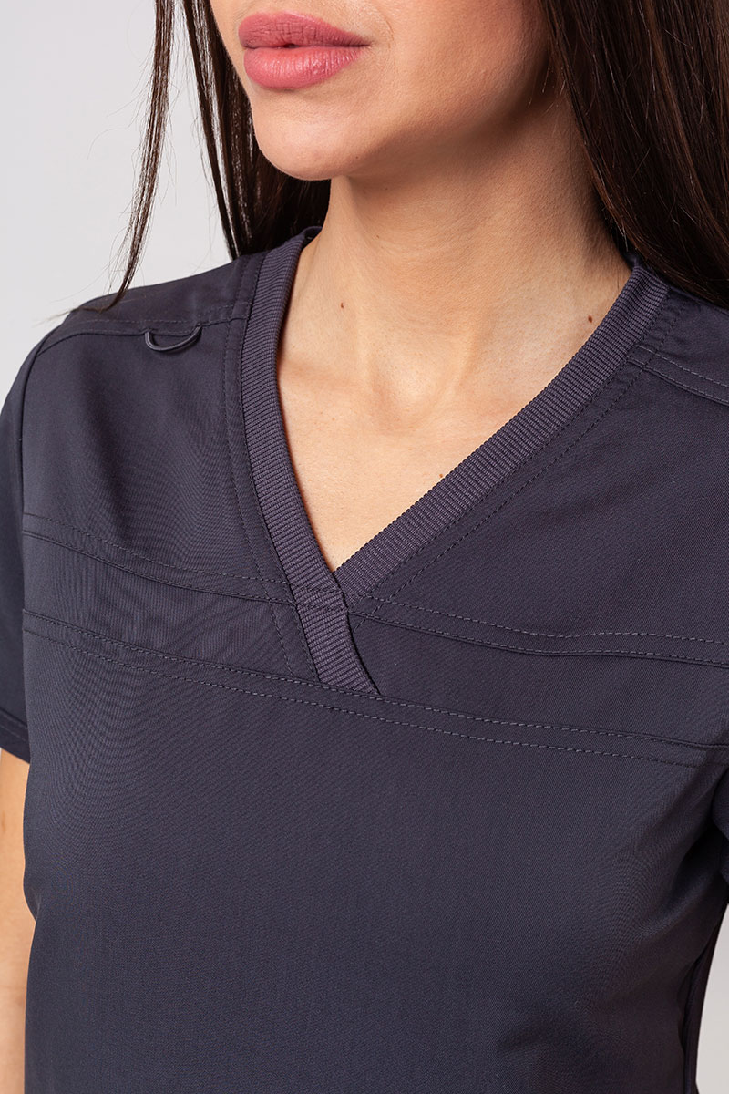 Czy masz wrażenie, że w życiu zawodowym i prywatnym jedną z najtrudniejszych umiejętności jest znajdowanie balansu? Projektanci amerykańskiej marki Dickies Medical przełożyli tę kategorię na odzież medyczną i zaprojektowali kolekcję Balance, żeby Cię w tym wspierać. Prezentowana bluza ma nowoczesny krój z dekoltem w szpic, który jest wykończony tkaniną dzianinową, podobnie jak tylne panele zapewniające swobodę ruchów. Lekkość i elastyczność tkaniny to zasługa spandexu i sztucznego jedwabiu w składzie. Dwie boczne kieszenie, stylowa pętla na identyfikator i możliwość prania w 60°C – łączą komfort i funkcjonalność tego modelu. Dla pełnej równowagi wrażeń.