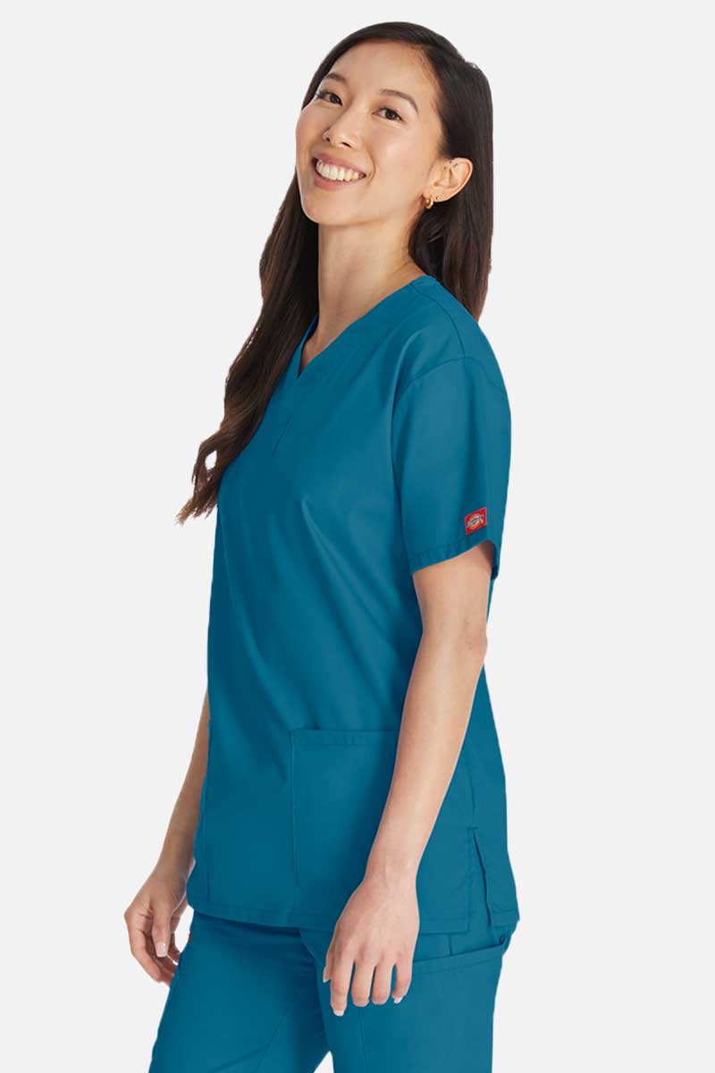 Wygoda, trwałość i dopasowanie, z których słynie marka Dickies Medical, w tym modelu znajdują pełne zastosowanie. Jeśli to właśnie ich szukasz w stroju medycznym – bluza z kolekcji Signature błyskawicznie znajdzie się wśród rzeczy, po które sięgasz najczęściej. Uniwersalny fason z dekoltem w szpic i krótkim rękawem, wyposażony w boczne wcięcia wentylacyjne oraz dwie pojemne kieszenie – to podstawa w tworzeniu niezawodnych stylizacji. Wytrzymały materiał z przewagą bawełny, który się ładnie układa i łatwo pierze (nawet w 60°C) oraz modne akcenty w postaci kontrastowych wewnętrznych lamówek i ukrytej kieszonki przełożą się na codzienną satysfakcję z noszenia bluzy. Chcesz się przekonać?