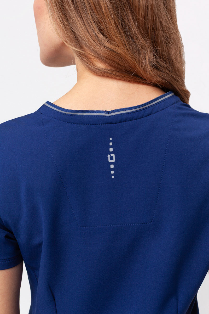 Sonia zaczyna się od dekoltu - asymetryczny, z subtelnym zamkiem, nadaje bluzie charakter i nowoczesny sznyt. Taliowany fason i modelujące szwy delikatnie podkreślają sylwetkę, a boczne wcięcia dodają lekkości. Miękka, elastyczna w czterech kierunkach tkanina odprowadza wilgoć, jest odporna na utratę koloru i zapewnia pełną swobodę ruchów. Trzy praktyczne kieszenie, w tym jedna z przegródką na długopis, łączą funkcjonalność z przemyślanym designem. Subtelne odblaskowe lamówki i dyskretne logo na zamku dopełniają całości, nadając bluzie styl, który wyróżnia ją w każdym środowisku pracy.