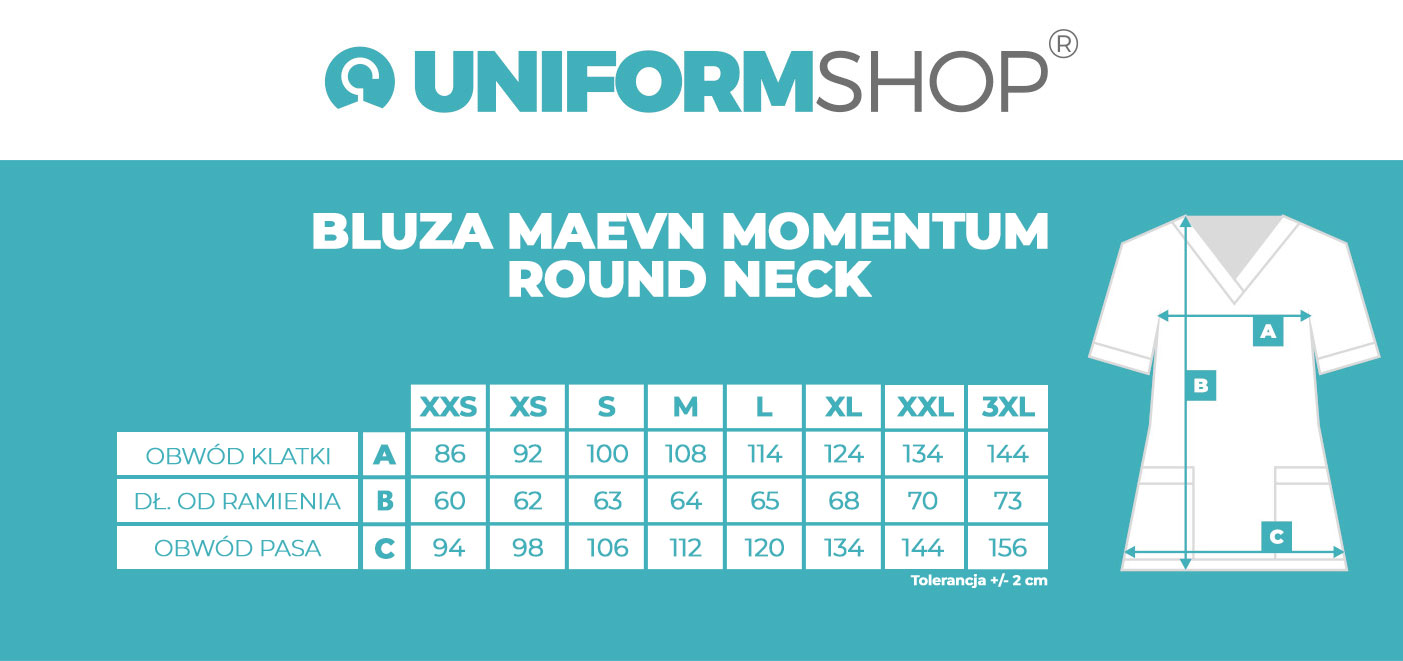 Zapomnij o kompromisach między stylem a funkcjonalnością. Bluza Momentum Round Neck łączy nowoczesny krój z funkcjonalnością stworzoną z myślą o aktywnych kobietach - trwały materiał odprowadzający wilgoć sprawia, że czujesz się świeża i komfortowa przez cały dzień. Trzy kieszenie oraz pętelka na identyfikator zapewniają praktyczność w każdej sytuacji zawodowej. Dzianinowy panel na karczku i boczne rozcięcia gwarantują pełną swobodę ruchów, a wyjątkowy krój „tuck-in" pozwala stylowo nosić bluzkę zarówno na wierzchu, jak i schowaną w spodniach. Dzięki elastycznemu mechanical stretch poczujesz różnicę już pierwszego dnia, to bluza, która pracuje tak ciężko jak Ty, ale wygląda przy tym bez wysiłku stylowo.