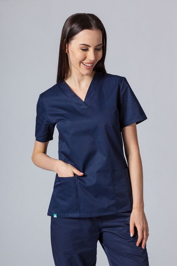 Rozpinana bluza z długim rękawem amerykańskiej firmy Maevn to kolejny produkt z cieszącej się bardzo dużą popularnością kolekcji Matrix. Zainteresowanie ze strony klientów kolekcja ta zawdzięcza przede wszystkim rewelacyjnej tkaninie z której jest uszyta, czyli poliestrowi z dodatkiem sztucznego jedwabiu i elastycznego spandexu. Takie połączenie sprawia, że bluza jest bardzo przyjemna w dotyku, tkanina nie gniecie się, a jej wysoka elastyczność wpływa na bardzo komfortowe użytkowanie i wygodę noszenia. Bluza będzie świetnym wyborem dla klientek chcących zakupić dodatkowe okrycie na zimniejsze dni, które zachowuje przy tym elegancką formę odzieży medycznej.