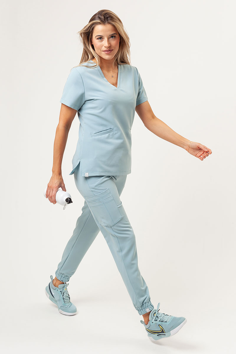 Przejrzałaś różne propozycje, ale od tej bluzy nie możesz oderwać wzroku? Tak działa model Premium Joy, spełniający najwyższe kryteria komfortu i elegancji w nowoczesnym wydaniu. Nietuzinkowy krój z efektownie wykończonym dekoltem w serek, bocznymi wcięciami i zaszewkami z tyłu to pewność pełnego dopasowania do Twoich kształtów i swobody ruchów. Dwie skośne kieszenie, krótki rękaw i bogata paleta kolorów stanowią kolejne atuty, które wpływają na atrakcyjność tego modelu. Przyjemna, mięsista tkanina z dodatkiem spandexu i funkcjonalny charakter bluzy sprawią, że z chęcią będziesz po nią sięgać i nosić jak najczęściej.