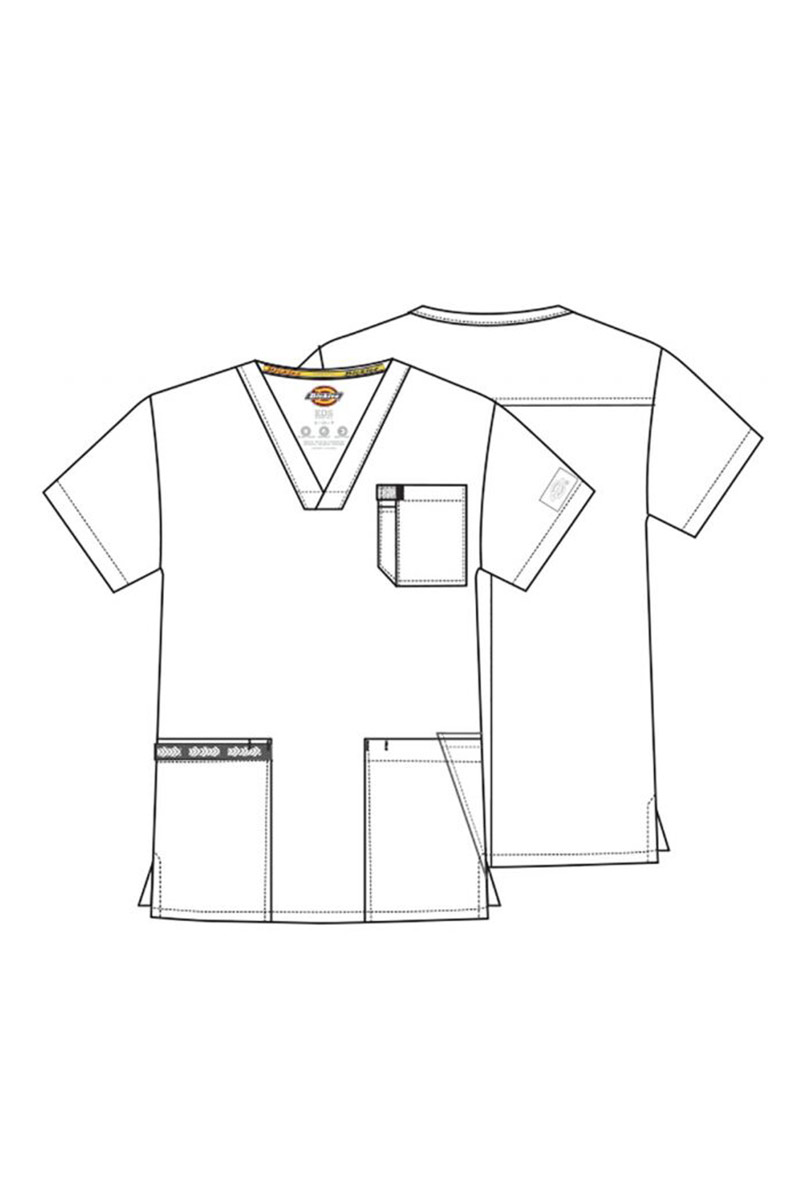 Ta prosta, luźna bluza z krótkim rękawem i modnym dekoltem w serek to absolutny must-have w Twojej służbowej szafie. Będzie bazą wielu ciekawych stylizacji, dlatego daj jej szansę ;) Obiecujemy, że nie zawiedzie Cię w żadnej sytuacji. Została wykonana z wygodnego, rozciągliwego w czterech kierunkach i odprowadzającego wilgoć materiału. Po bokach ma dodatkowe otwory wentylacyjne, a na piersi i u dołu kilka naszytych kieszeni na akcesoria i długopis. Charakteru dodają bluzie ciekawe przeszycia i wyraziste kolory.