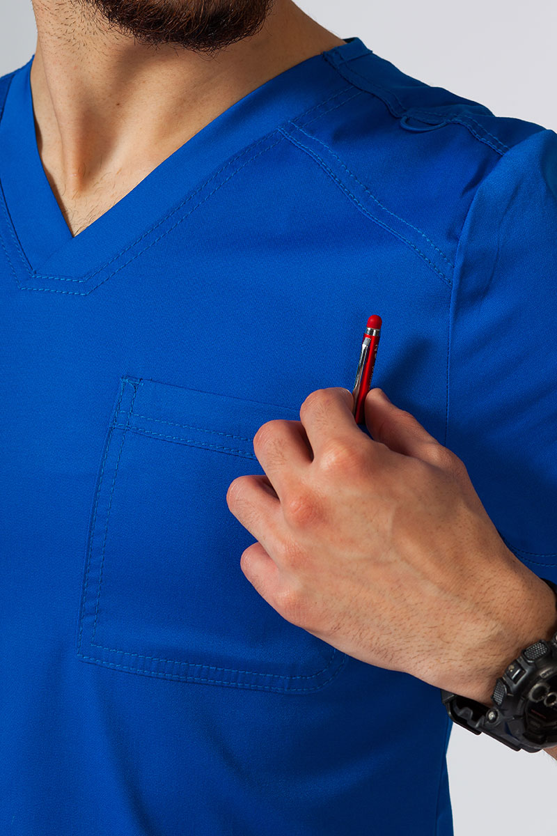 Nowoczesna, starannie uszyta, solidna – to najważniejsze cechy męskiej bluzy z kolekcji Matrix. Projektanci stworzyli produkt, który spełni oczekiwania bardzo wymagających klientów. Dzięki zastosowaniu materiału z domieszką sztucznego jedwabiu i spandexu bluza jest bardzo przyjemna w dotyku oraz rozciągliwa. Bluzie dedykowane są dwa modele spodni z tej samej kolekcji, z prostą nogawką oraz zwężane typu jogger. Jeśli szukasz wygody i odmiany w swoim pracowniczym wyglądzie ta bluza jest dla Ciebie!