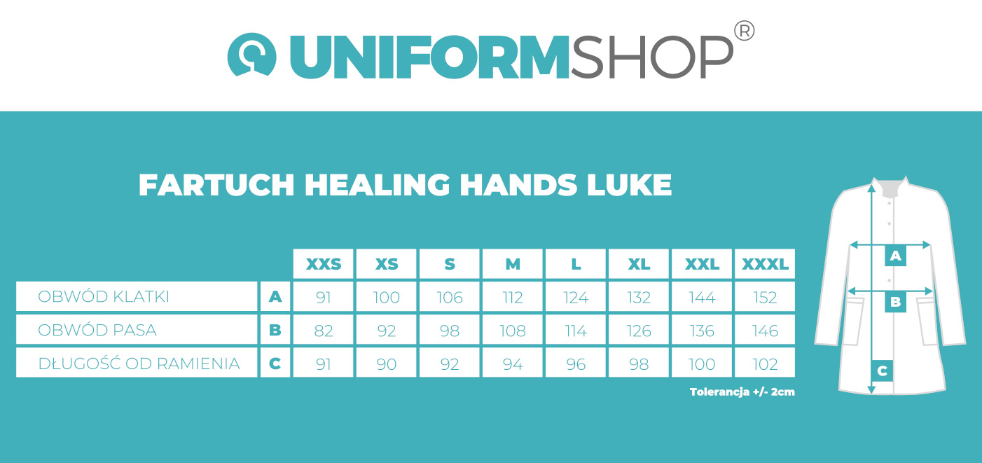 - Naszywka logo "Healing Hands" na lewej kieszeni