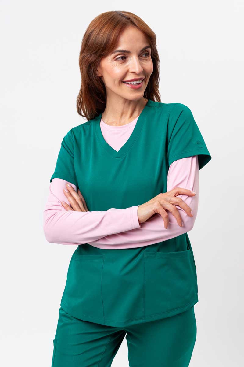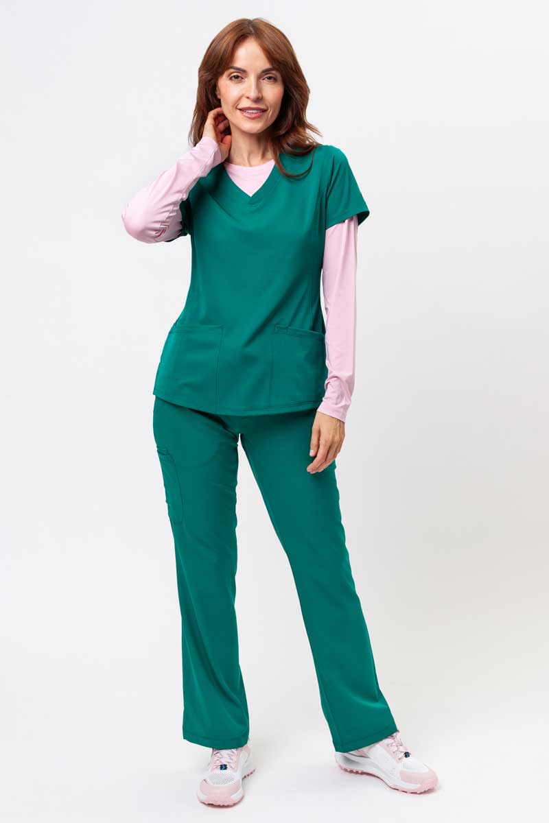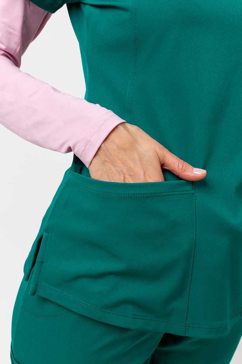 Czasem w pracy potrzebujesz nie tylko wygody, ale też pewności, że Twój strój podkreśli profesjonalizm i doda energii na cały dzień. Bluza z dekoltem w kształcie litery V i subtelnymi przeszyciami, wraz ze spodniami o lekko rozszerzanym kroju i regulowanym pasku, tworzą duet, który łączy swobodę ruchów z kobiecym stylem. Wykonane z elastycznej, oddychającej tkaniny, która odprowadza wilgoć, zapewniają świeżość i komfort od pierwszej do ostatniej minuty zmiany. Praktyczne kieszenie w bluzie i spodniach to gwarancja, że wszystko, czego potrzebujesz, masz zawsze pod ręką. Ten zestaw to więcej niż uniform — to Twoja codzienna dawka pewności i wygody.
