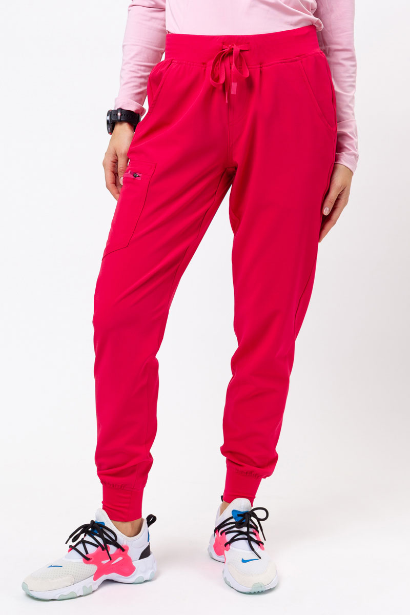 Świetnie skrojona bluza i spodnie o modnym fasonie tworzą razem parę idealną. Taką, która pozwoli Ci na swobodną, wygodną pracę przez wiele godzin i poczucie nieskazitelnego wyglądu. Jeśli tego właśnie szukasz, Twoją uwagę zwróci komplet Valiant. To połączenie spodni typu jogger i bluzki z dekoltem w serek, z kobiecą talią i delikatnie rozszerzanym dołem. Strój został wykonany z materiału z recyklingu, który jest delikatny, satynowy w dotyku, odporny na gniecenie, nie absorbuje wilgoci i ekspresowo schnie. Dzięki domieszce spandexu świetnie dopasowuje się do ciała i Twoich ruchów, co zapewnia pełnię komfortu w każdej sytuacji. Zestaw Valiant dostępny jest w kilku żywych kolorach.
