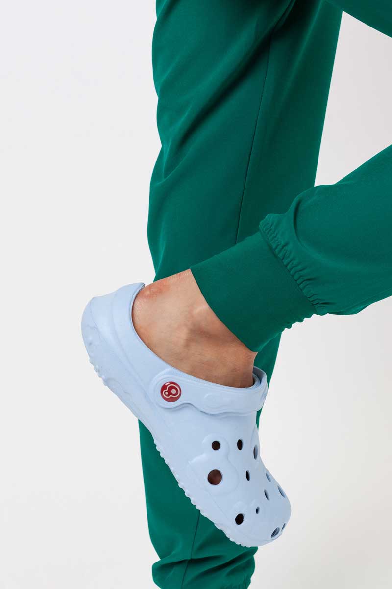 Świetnie skrojona bluza i spodnie o modnym fasonie tworzą razem parę idealną. Taką, która pozwoli Ci na swobodną, wygodną pracę przez wiele godzin i poczucie nieskazitelnego wyglądu. Jeśli tego właśnie szukasz, Twoją uwagę zwróci komplet Valiant. To połączenie spodni typu jogger i bluzki z dekoltem w serek, z kobiecą talią i delikatnie rozszerzanym dołem. Strój został wykonany z materiału z recyklingu, który jest delikatny, satynowy w dotyku, odporny na gniecenie, nie absorbuje wilgoci i ekspresowo schnie. Dzięki domieszce spandexu świetnie dopasowuje się do ciała i Twoich ruchów, co zapewnia pełnię komfortu w każdej sytuacji. Zestaw Valiant dostępny jest w kilku żywych kolorach.