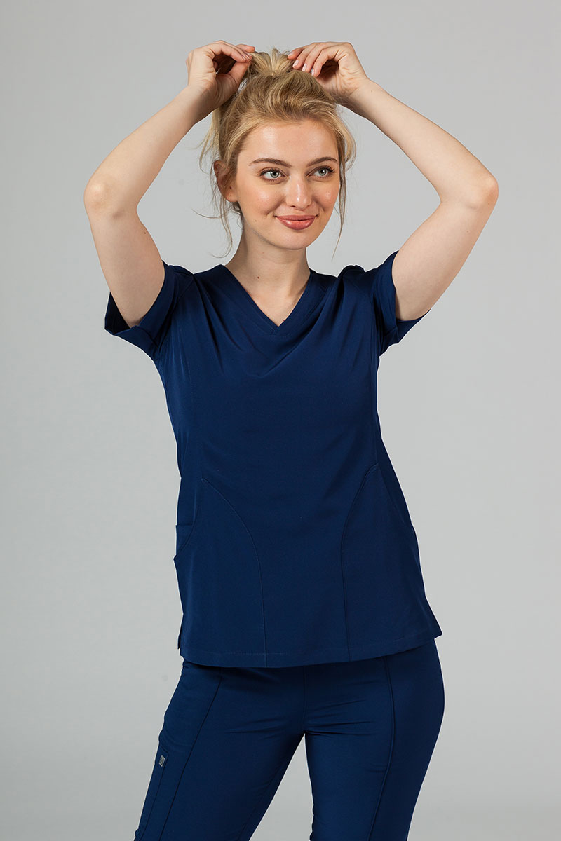 Widzisz go i mówisz „Ten komplet musi być mój”?! W przypadku zestawu Maevn Matrix to nie tylko impuls, ale świetna decyzja. Tkanina, z której jest uszyty zawiera spandex, dzięki czemu odzież jest wygodna i ładnie się układa. Bluza zwraca uwagę kontrastowymi wstawkami przy dekolcie, a pojemne kieszenie, w tym jedna na smartfon, wzmocnione są podwójnymi przeszyciami. Spodnie mają ciekawy krój, z delikatnie zwężającą się ku dołowi nogawką i lamówką imitującą kant. Boczne wcięcia u dołu i guma w pasie sprawiają, że łatwo się je wkłada i przyjemnie nosi przez cały dzień pracy.