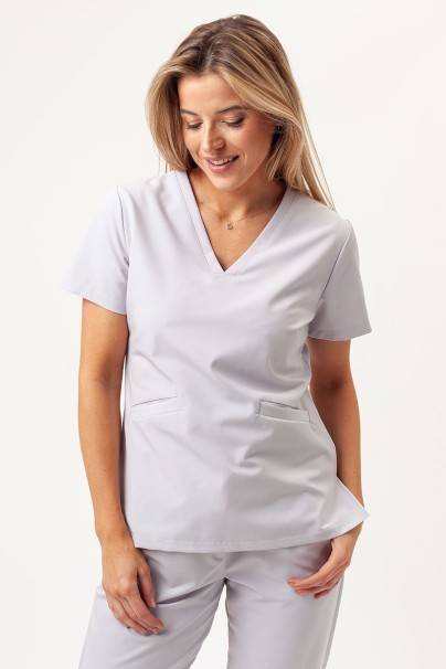 Najszybszy pomysł na strój do pracy to… komplet odzieży, który masz pod ręką. Ale przecież nie chcesz poprzestawać na szybkości. Liczy się doskonały styl, jakość wykonania, komfort użytkowania. Te wszystkie kryteria spełnia zestaw odzieży medycznej z kolekcji Sunrise Uniforms Premium, łączący nowoczesną bluzę z ponadczasowymi spodniami o prostych, zwężanych ku dołowi nogawkach. Góra z dekoltem w serek, skośnymi kieszeniami i wzmocnionymi przeszyciami w newralgicznych miejscach idealnie koresponduje z dołem, wyposażonym w funkcjonalne kieszenia i szeroką gumę w pasie, z dodatkowym troczkiem dla pełnego dopasowania. Komplet wykonany jest z porządnej, przyjemnej dla skóry tkaniny z domieszką elastanu, w której będzie Ci wygodnie przez cały dzień.