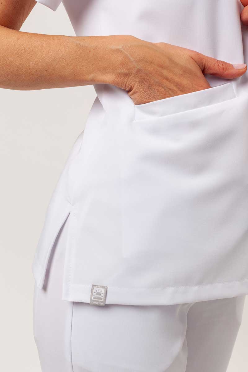 Odzież medyczna, za którą zatęsknisz, kiedy będzie w praniu? To musi być widoczny na zdjęciach komplet z linii Sunrise Uniforms Premium. Tworzy nowoczesny, wyróżniający się look, utrzymany w eleganckiej, sportowej estetyce. Składa się z komfortowej bluzy z krótkim rękawem i kunsztownie wykończonym dekoltem w literę V oraz spodni joggerów z szeroką gumą w pasie, funkcjonalnie zaprojektowanymi kieszeniami – w tym jedną cargo – i ściągaczami u dołu nogawek. Całość wykonana z solidnego, przyjemnego dla skóry materiału z dodatkiem spandexu, porządnie odszyta, dostępna w wielu wariantach kolorystycznych. Podczas noszenia ujawni Ci całą resztę swoich atutów.