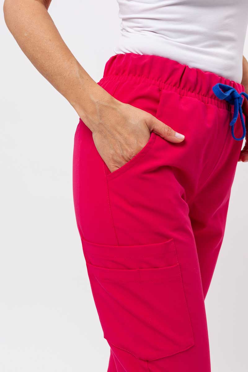 Odzież medyczna, za którą zatęsknisz, kiedy będzie w praniu? To musi być widoczny na zdjęciach komplet z linii Sunrise Uniforms Premium. Tworzy nowoczesny, wyróżniający się look, utrzymany w eleganckiej, sportowej estetyce. Składa się z komfortowej bluzy z krótkim rękawem i kunsztownie wykończonym dekoltem w literę V oraz spodni joggerów z szeroką gumą w pasie, funkcjonalnie zaprojektowanymi kieszeniami – w tym jedną cargo – i ściągaczami u dołu nogawek. Całość wykonana z solidnego, przyjemnego dla skóry materiału z dodatkiem spandexu, porządnie odszyta, dostępna w wielu wariantach kolorystycznych. Podczas noszenia ujawni Ci całą resztę swoich atutów.