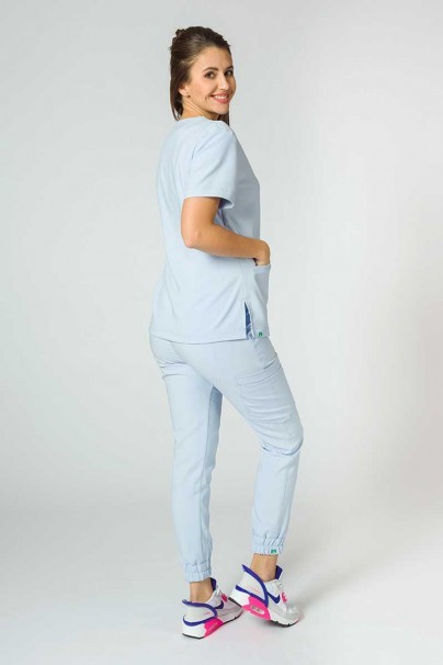 Nic tak nie cieszy w zawodowej garderobie jak nowy komplet odzieży, który doda Twojej stylizacji wyrazistości. Intensywny kolor, wygodny materiał z domieszką wiskozy i elastanu oraz ciekawy krój sprawią, że poczujesz się odmieniona. Doskonale odszyta bluza z krótkim rękawem i dekoltem w literę V to kwintesencja klasycznego piękna. Spodnie typu jogger, z wielofunkcyjną kieszenią na nogawce oraz gumą w pasie i przy kostkach uzupełnią stylizację o sportowy akcent. W ten sposób komplet Sunrise Uniforms ożywi Twój zawodowy wizerunek.