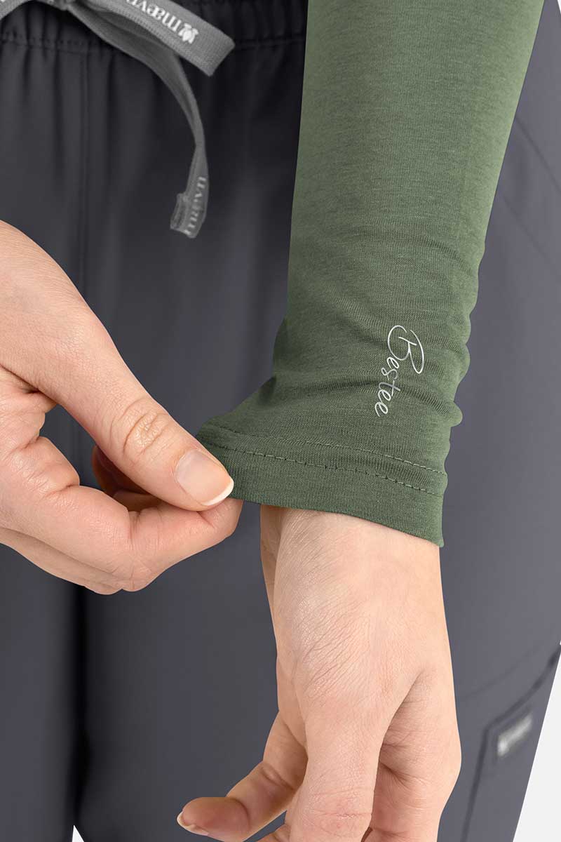 Stop szarości i monotonii, dyżur przejmują kolorowe koszulki Maevn Bestsee! Dostępne w szerokiej palecie barw, mają tę zaletę, że potrafią naładować Twoje baterie nawet w pochmurne dni. Fason z długim rękawem i ozdobną naklejką na lewej ręce, wyposażony w okrągły dekolt doskonale sprawdzi się jako główny element stylizacji albo baza, na którą założysz bluzę medyczną lub fartuch. Elastyczny materiał z dodatkiem lycry oferuje Ci pełne dopasowanie i delikatny połysk. Intensywna zieleń, głęboka czerwień czy stonowana biel? Niech oddają Twój nastrój, kiedy przekraczasz próg swojej pracy.