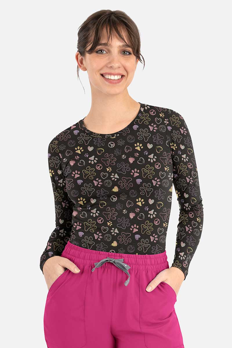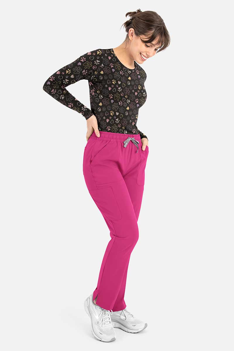 Stop szarości i monotonii, dyżur przejmują kolorowe koszulki Maevn Bestsee! Dostępne w szerokiej palecie barw, mają tę zaletę, że potrafią naładować Twoje baterie nawet w pochmurne dni. Fason z długim rękawem i ozdobną naklejką na lewej ręce, wyposażony w okrągły dekolt doskonale sprawdzi się jako główny element stylizacji albo baza, na którą założysz bluzę medyczną lub fartuch. Elastyczny materiał z dodatkiem lycry oferuje Ci pełne dopasowanie i delikatny połysk. Intensywna zieleń, głęboka czerwień czy stonowana biel? Niech oddają Twój nastrój, kiedy przekraczasz próg swojej pracy.