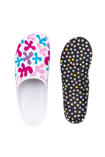 Masz swój styl i chcesz go podkreślić również w pracy? Klapki Como Happy ułatwią Ci to zadanie! Nazwa tego modelu nie jest przypadkowa, wystarczy spojrzeć na ich nietuzinkowy, kolorowy print, który od razu wywołuje uśmiech na twarzy. Lekka konstrukcja z wyjmowaną wkładką zapewni Ci komfort przez cały dzień. Tworzywo, z którego wykonane jest obuwie, to elastyczna i trwała pianka EVA o właściwościach hipoalergicznych. Jej dodatkowymi atutami są odporność na grzyby, pleśnie i działanie wody. Produkt posiada deklarację zgodności z wymaganiami UE w zakresie zdrowia i bezpieczeństwa oraz spełnia normę ISO 20347:2012. To dużo argumentów, żeby uśmiechnąć się właśnie do tego modelu :)
