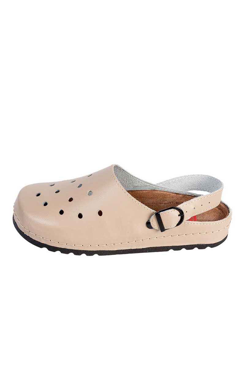 Klapki stworzone z myślą o tych, którzy spędzają długie godziny w ruchu i oczekują od obuwia czegoś więcej niż tylko „jest wygodnie”. Skórzana cholewka pozwala stopom oddychać, zapewniając naturalny komfort i eliminując problemy typowe dla syntetycznych materiałów. Miękka podeszwa z pianki MEMORY delikatnie podpiera stopę tam, gdzie trzeba - bez uczucia zapadania się. Profilowana wkładka oraz szerokie przody pomagają utrzymać prawidłowe ułożenie stóp i zmniejszają ryzyko dolegliwości, które potrafią skutecznie zepsuć dzień w pracy. Antypoślizgowa, gumowa podeszwa daje pewność kroku nawet na śliskim podłożu, a łatwe czyszczenie sprawia, że klapki długo zachowują świeży, profesjonalny wygląd. To model, który dyskretnie dba o komfort - bez kompromisów i bez zbędnego rozgłosu.