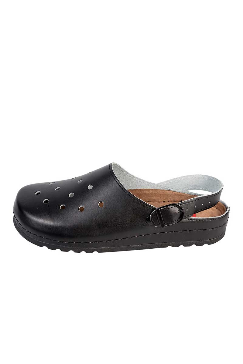 Klapki stworzone z myślą o tych, którzy spędzają długie godziny w ruchu i oczekują od obuwia czegoś więcej niż tylko „jest wygodnie”. Skórzana cholewka pozwala stopom oddychać, zapewniając naturalny komfort i eliminując problemy typowe dla syntetycznych materiałów. Miękka podeszwa z pianki MEMORY delikatnie podpiera stopę tam, gdzie trzeba - bez uczucia zapadania się. Profilowana wkładka oraz szerokie przody pomagają utrzymać prawidłowe ułożenie stóp i zmniejszają ryzyko dolegliwości, które potrafią skutecznie zepsuć dzień w pracy. Antypoślizgowa, gumowa podeszwa daje pewność kroku nawet na śliskim podłożu, a łatwe czyszczenie sprawia, że klapki długo zachowują świeży, profesjonalny wygląd. To model, który dyskretnie dba o komfort - bez kompromisów i bez zbędnego rozgłosu.
