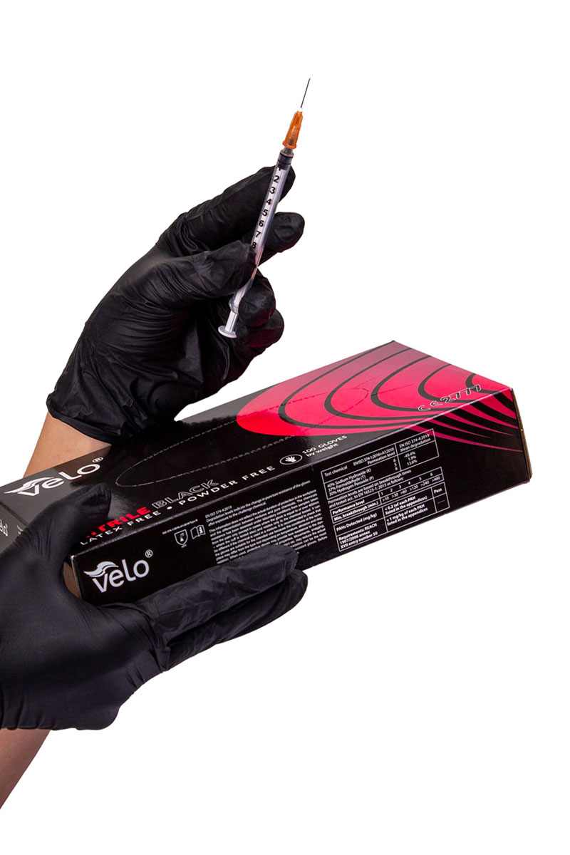 Niesterylne, jednorazowe rękawice diagnostyczne i ochronne, nitrylowe, bezpudrowe, bezlateksowe. Kształt uniwersalny pasujący na prawą i lewą dłoń. Powierzchnia wewnętrzna i zewnętrzna - polimer butadienowy. Mikroteksturowane z dodatkową teksturą na końcach palców. Mankiet rolowany. Przebadane na przenikalność substancji chemicznych i cytostatyków. Dyspenser oraz otwór dozujący zabezpieczone dodatkową folią chroniącą zawartość przed kontaminacją. Dyspensery pasują do uniwersalnych dozowników naściennych. Nie zawierają tiuramów, MBT, DPG, ZMBT, ftalanów, nitrozoamin oraz protein lateksowych.