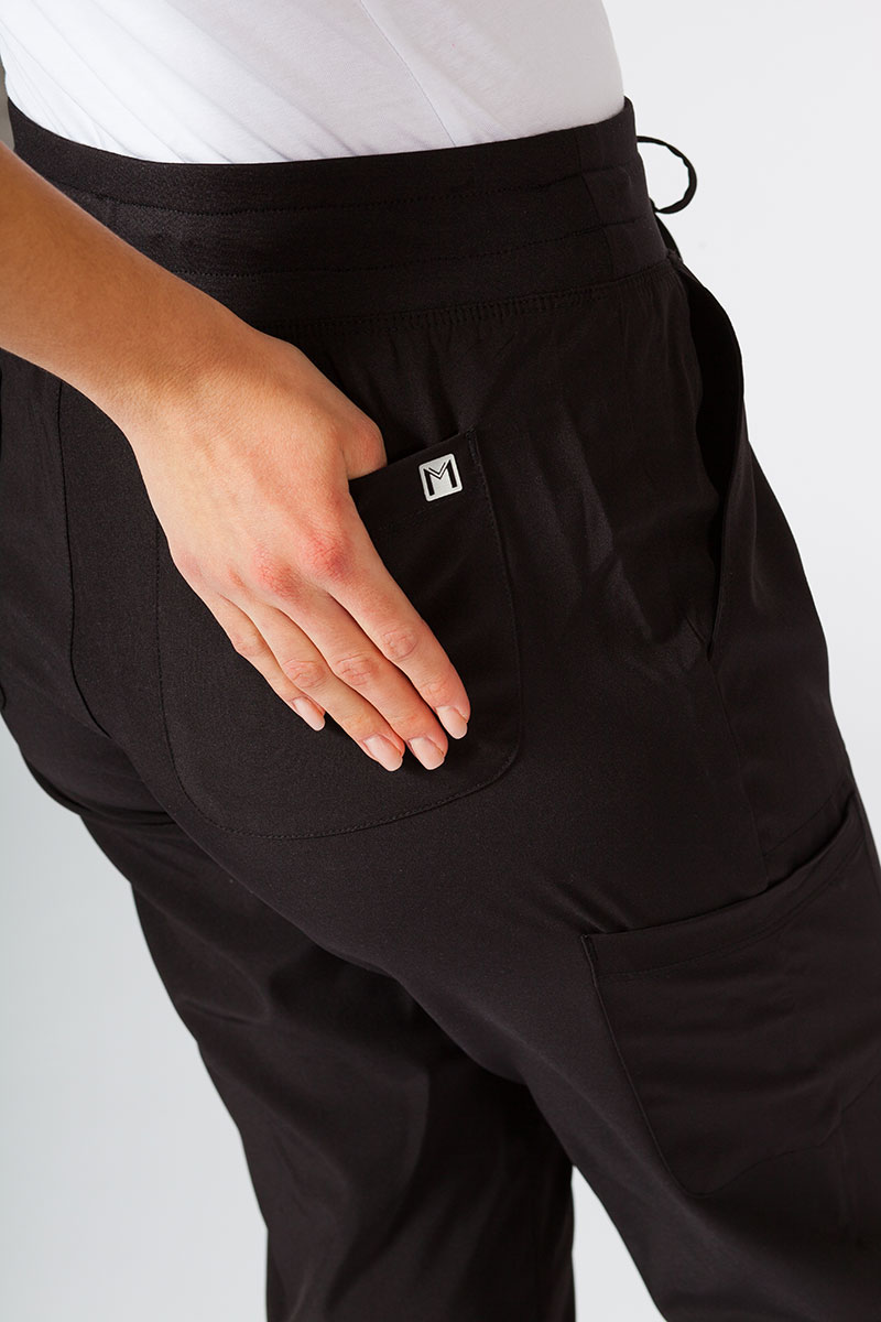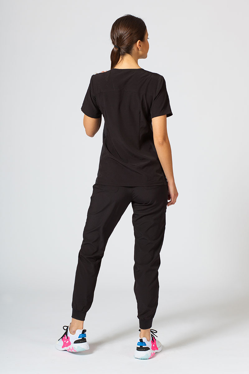 Modne i wygodne. Spodnie Maevn wzorowane są na jednym z najpopularniejszych w ostatnim czasie fasonów – joggerach. Jego znaki rozpoznawcze to szeroka gumka w pasie, ściągacze na nogawkach i zwężenia ku dołowi. Aby dostosować spodnie do wymagań medyków, zastosowano materiał z domieszką spandexu i podwójne szwy, a także dodano kilka funkcjonalnych kieszeni. Ten model spodni dowodzi, że komfort i praktyczność mogą iść w parze z modą.