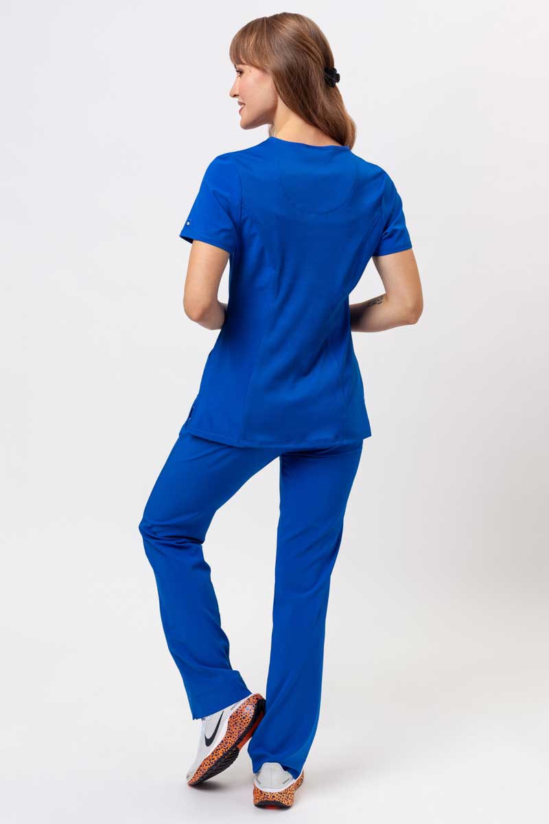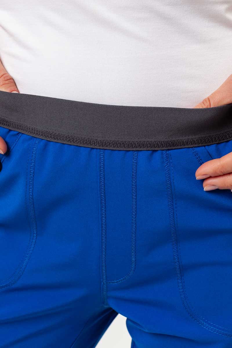 Idealnie dopasowane, elastyczne, z modnie rozszerzającą się ku dołowi nogawką – to spodnie medyczne Cherokee Infinity w pełnej krasie. Materiał jest wytrzymały, dostosowuje się do ciała, jest łatwy w utrzymaniu w świetnej formie. Przeszycia imitują dżinsowy design, ale w pasie znajdziesz szeroką gumę, która zapewni Ci komfort i dopasowanie. Delikatnie zarysowane kieszenie są pojemne – idealne na telefon, mały notes i przybory do pisania. Dzięki mankietom i rozcięciom u dołu spodnie doskonale leżą i nie podwijają się nieestetycznie na butach. Ideał! ;)