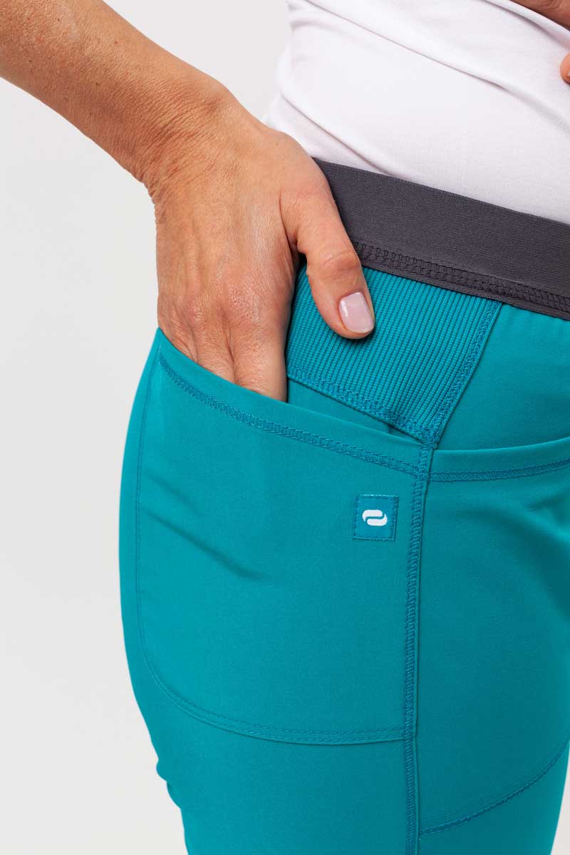Idealnie dopasowane, elastyczne, z modnie rozszerzającą się ku dołowi nogawką – to spodnie medyczne Cherokee Infinity w pełnej krasie. Materiał jest wytrzymały, dostosowuje się do ciała, jest łatwy w utrzymaniu w świetnej formie. Przeszycia imitują dżinsowy design, ale w pasie znajdziesz szeroką gumę, która zapewni Ci komfort i dopasowanie. Delikatnie zarysowane kieszenie są pojemne – idealne na telefon, mały notes i przybory do pisania. Dzięki mankietom i rozcięciom u dołu spodnie doskonale leżą i nie podwijają się nieestetycznie na butach. Ideał! ;)
