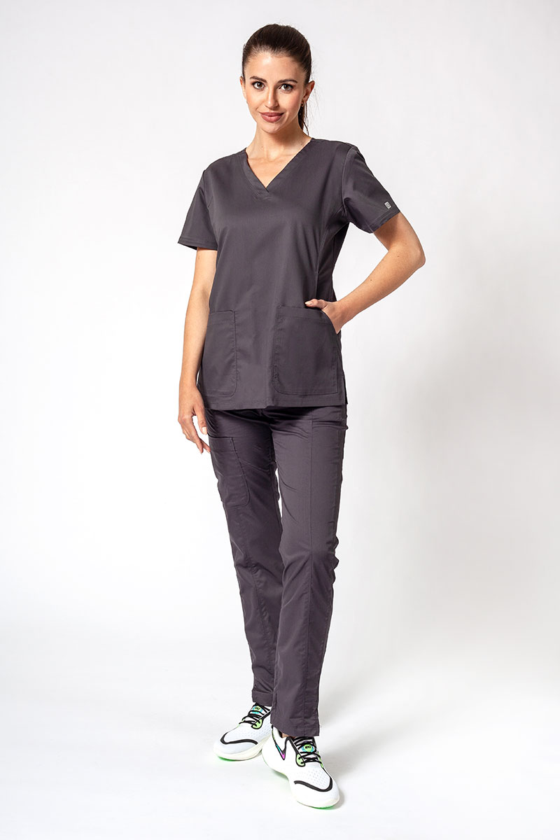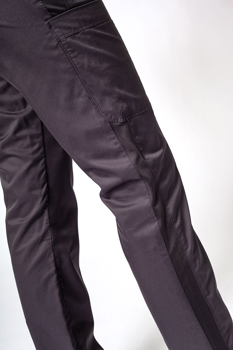 Proste rozwiązania są najlepsze? Kiedy się patrzy na krój prezentowanych tutaj spodni nie można się nie zgodzić. To superwygodny model dla poszukujących sportowego stylu i swobody w pracy. Lekki materiał ze sztucznym jedwabiem i włóknem elasterell-P w składzie uprzyjemni Twojej skórze dzień. Efektownie zaprojektowane kieszenie, elastyczne lamówki i dodatkowa wstawka dzianinowa z tyłu tworzą oryginalny design. Dodaj do tego boczne wcięcia u dołu i możesz się cieszyć komfortem przez cały długi dyżur ;)