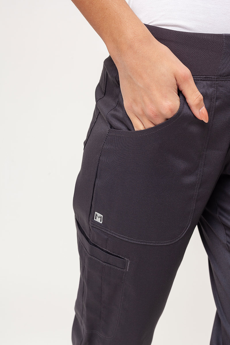 Najwygodniejsze spodnie do pracy? To muszą być joggery ;) Te z kolekcji Maevn Matrix nie zawiodą Cię w żadnej sytuacji! Dzięki domieszce jedwabiu i spandexu są miękkie w dotyku, przyjemne dla ciała, a do tego rozciągliwe. Materiał świetnie odprowadza wilgoć, zapewniając Ci komfort i poczucie świeżości nawet podczas intensywnego dyżuru. Dzięki szerokiej gumie ze sznureczkiem w pasie możesz dopasować spodnie idealnie do swoich preferencji. Zwężana nogawka i ściągacze u dołu gwarantują modny i… wygodny look.