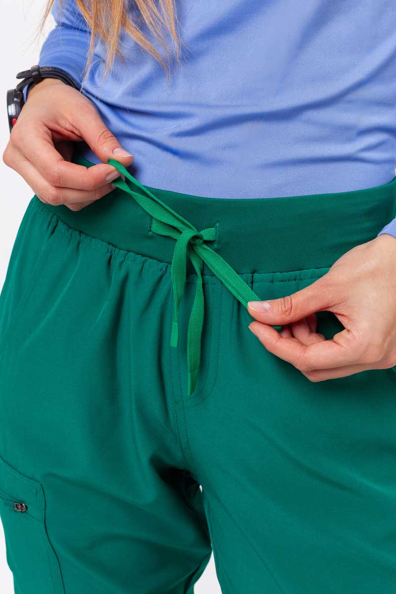 Czy funkcjonalność może iść w parze z modą? W tej parze spodni medycznych owszem! Model Valiant zachwyca zwężaną nogawką, zakończoną modnym ściągaczem oraz satynowym w dotyku materiałem. Spodnie są jednocześnie elastyczne, przyjemne dla skóry, nie krępują ruchów i posiadają kilka pojemnych kieszeni na codzienne przedmioty, których potrzebujesz w pracy. Zostały wykonane z materiału pochodzącego z recyklingu, który się nie gniecie i szybko wysycha – wygląda dobrze w każdej sytuacji. To dla Ciebie idealny wybór!