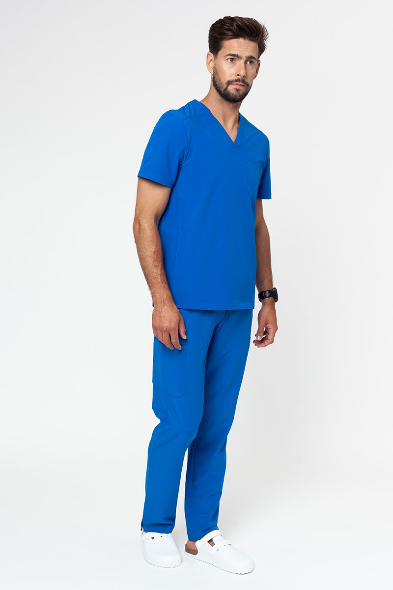 Jedyne „ale”, jakie przyjdzie Ci do głowy po założeniu tych spodni to „Ale wygodne!” Prezentowany model firmy Adar doskonale sprawdzi się na co dzień, nawet podczas najbardziej wymagającego dyżuru. Elastyczna tkanina z dodatkiem spandexu daje nieograniczony ruch, a odporność na zagniecenia i zapachy wpływa na wysoką jakość użytkowania. Nowoczesny fason z wąskimi nogawkami i bocznymi rozcięciami u dołu, wzmocnione szwy z podwójnym ściegiem i 8 kieszeni na akcesoria stylowo wpiszą się w Twój profesjonalny wizerunek :)